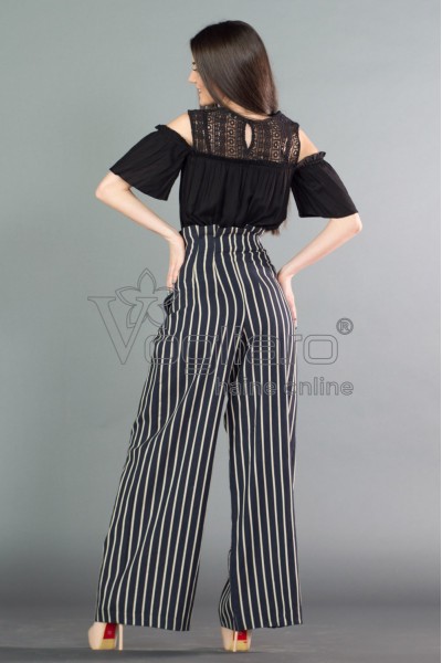 - Pantaloni bleumarin evazati cu dungi