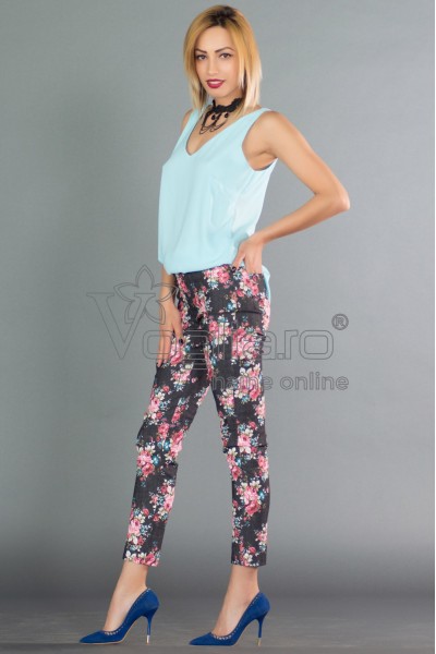 Pantalonii cu imprimeu floral sunt item-ul de senzatie in acest sezon. Pantaloni imitatie jeans.