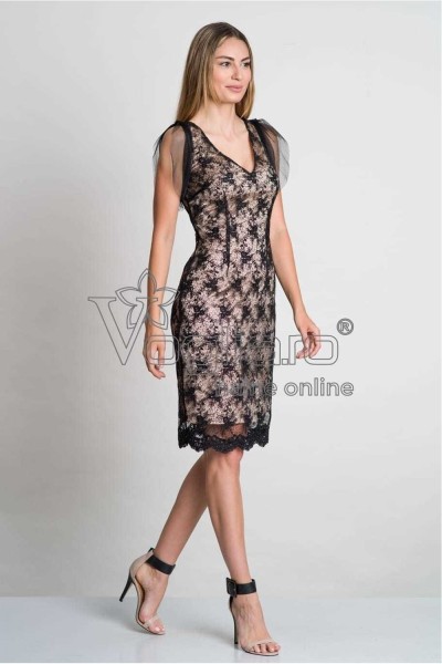 ROCHIE DANTELA NEAGRA BRODATA CU MANECI DIN TULL APLICATE